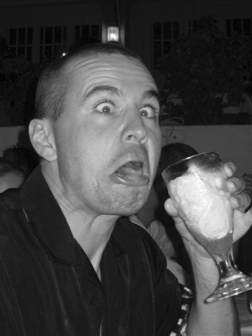 Here's another snap of me after trying Stef's dessert, icecream in a glass filled to the brim with some bloody strong tasting vodka:
