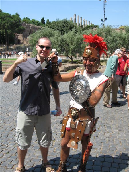 Of course, having a battle with a gladiator was all part of the experience. This photo is all smiles and laughter, just before I beat the shiit out of him:
