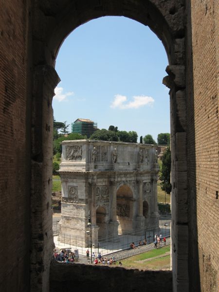 Arco di Costantino, viewed through one of the Colosseum's many archways: