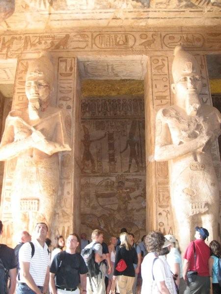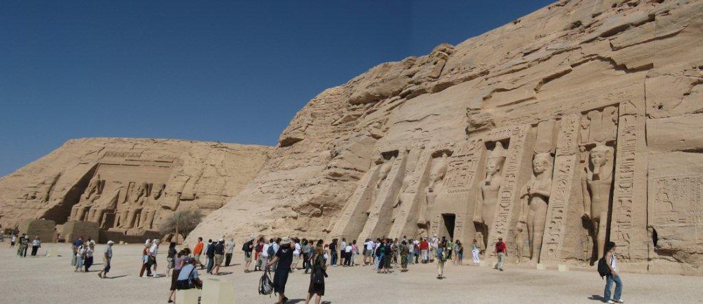 What's not generally known before you get there (well, at least not to me), is that there are two temples there, originally carved out of the mountainside for Pharaoh Ramesses II in the 13th century BC, as a monument to him and his queen Nefertari. The complex was relocated in the 1960s, on an artificial hill above the Aswan dam reservoir (otherwise it would be at the bottom of lake Nasser).