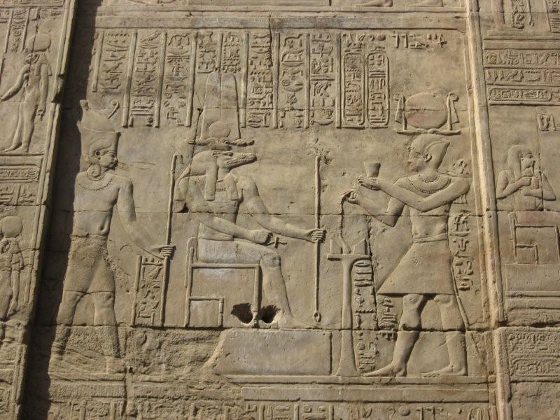 Hieroglyphics showing the crocodile god receiving offerings