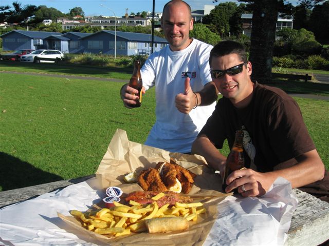 Anyway, To get the most out of wakeboarding, you have to prepare yourself the night before with a good feed of fish and chips with a couple of beers at Ngamotu beach (port Taranaki):