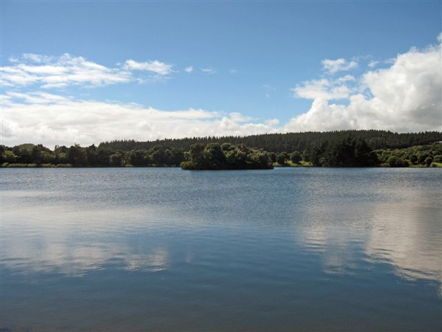 One of Scott's favourite haunts for wakeboarding (thanks to it convenience) is Lake Rotomanu, New Plymouth (with a small island in the middle):